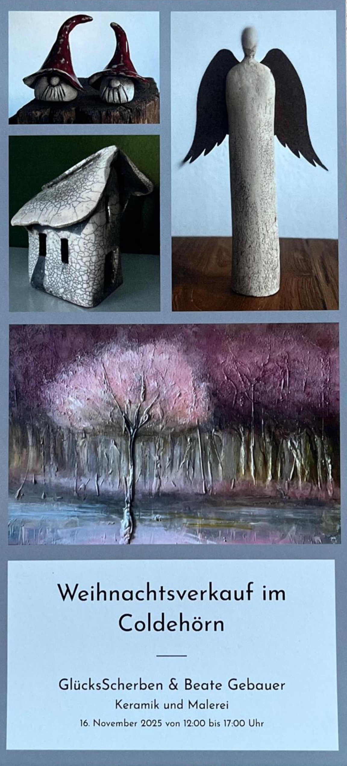 Von Traumzauberbäumen, Schilfgeflüster, den Verlockungen der Küste und anderen magischen Momenten zwischen Himmel und Erde erzählen meine Bilder, die nun erstmalig im Restaurant Colderhörn im historischen Scheunenviertel von Kremmen zu sehen sind. Am 16.11. bringe ich noch eine Reihe weiterer Werke mit und bin von 12-17 Uhr gemeinsam mit den GlücksScherben vor Ort, um ins Gespräch zu kommen und auch für das eine oder andere besondere Weihnachtsgeschenk zu sorgen...