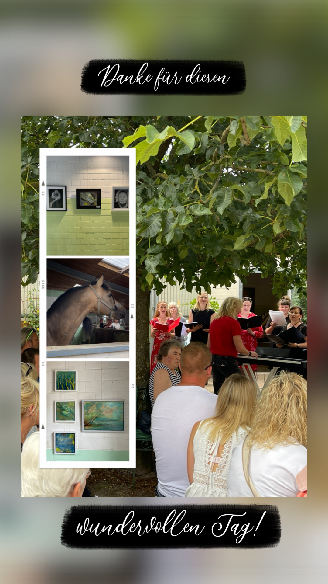 Mal etwas ganz anderes und sowas von schön war das Sommerfest KUNST AUF DEM HOF bei unserer Freundin Silvie Chiachiarella. In den stilvollen Pferdeboxen ihres schönen Anwesens kamen unsere Werke auf eine ganz neue und wirklich wunderbare Weise zur Geltung. Umrahmt von den Klängen des Popchors …